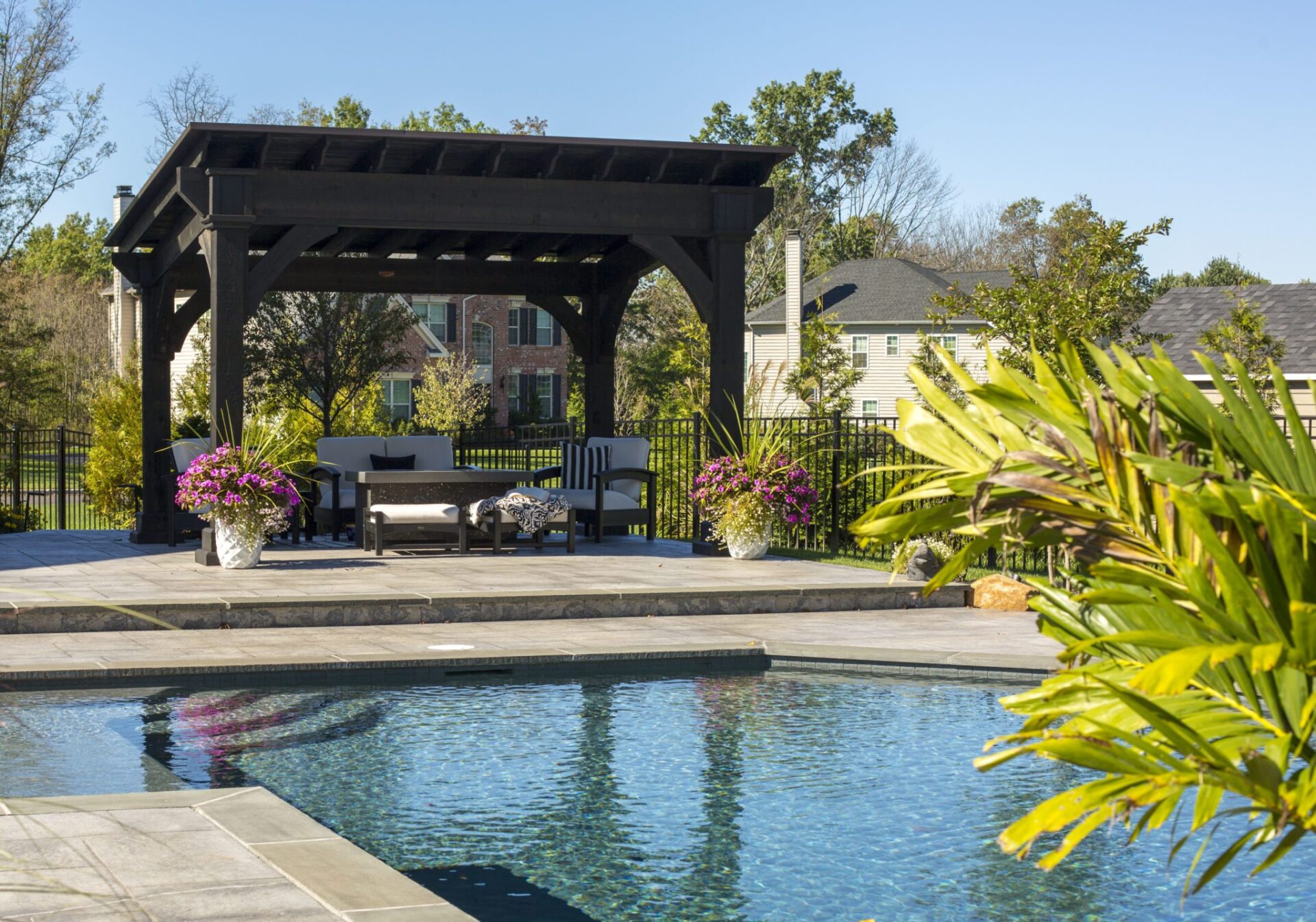 Another popular trend is to have a source of shade next to the pool. Your pavilion can add that needed shade. Bars and a lounge under a pavilion are a great addition. Pavilions can create a high-end resort in your backyard! You can add more privacy by adding an EZShade Curtain. Our blog How to Create Backyard Shade and Comfortable Living explains our EZShade Curtains.