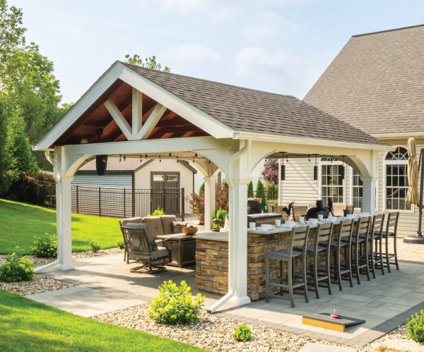 20′ x 24′ Grand Estate Pavilion | All Weather White Vinyl, Mahogany Ceiling Finish, Classic Asphalt, Enhanced Posts
