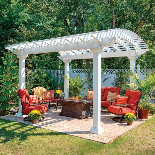 14′ x 20′ Artisan Pergola | All Weather White Vinyl, Six Deluxe Tapered Columns