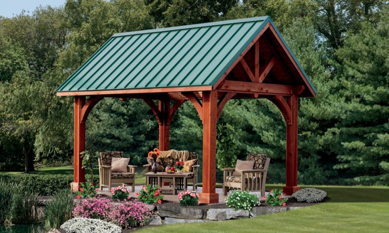 10′ x 14′ Santa Fe Pavilion | Classic Wood, Canyon Brown Finish, Metal Roof, Enhanced Posts